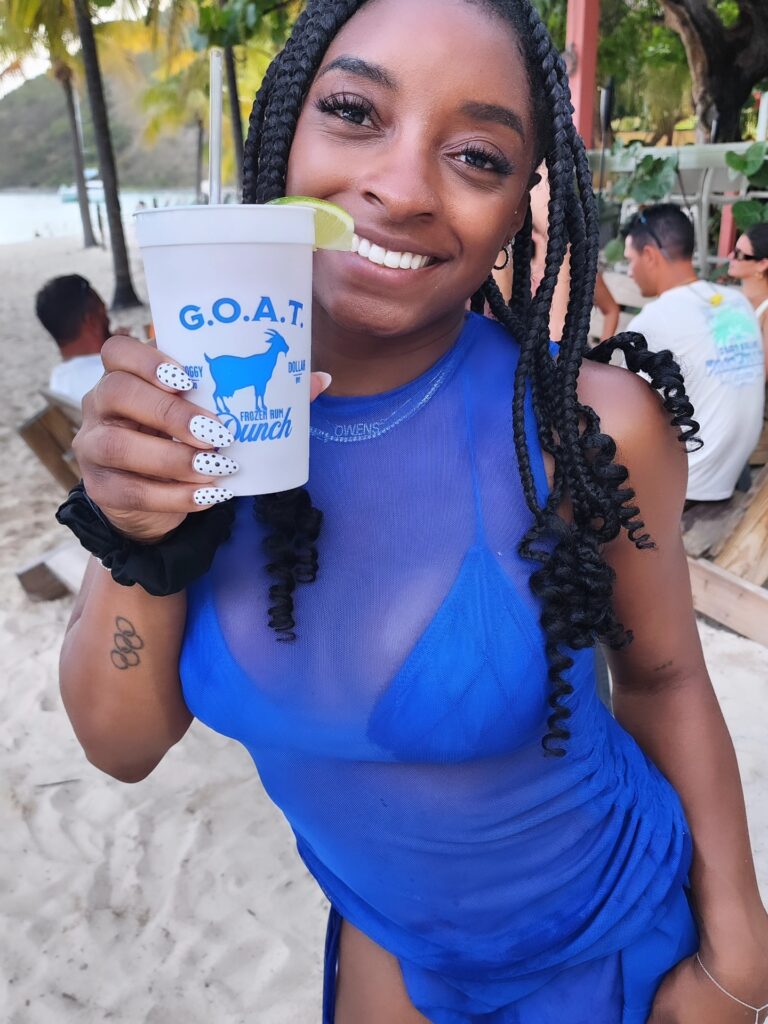 While the exact date of her stop remains unclear, the Soggy Dollar Bar shared a Facebook post on July 23 featuring the Olympic champion enjoying her time at the establishment. In one photo, Biles Owens is seen smiling with a signature drink, the G.O.A.T. Punch, in hand. The caption read: “When the G.O.A.T. @simonebiles pops in for a G.O.A.T. (punch) at the #1 Beach Bar in the Caribbean.”