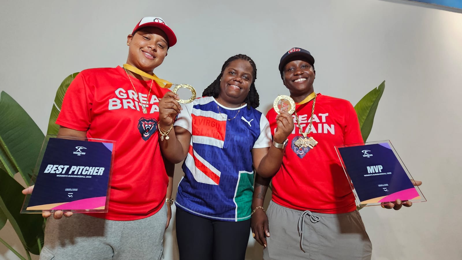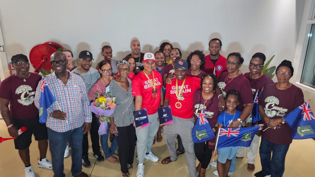 Officials and supporters gathered Tuesday evening at the Terrence B. Lettsome International Airport to welcome home Darier Malone and Claury Scatliffe, two British Virgin Islands athletes who helped Great Britain capture the European Women’s Baseball Championships in the Czech Republic.
