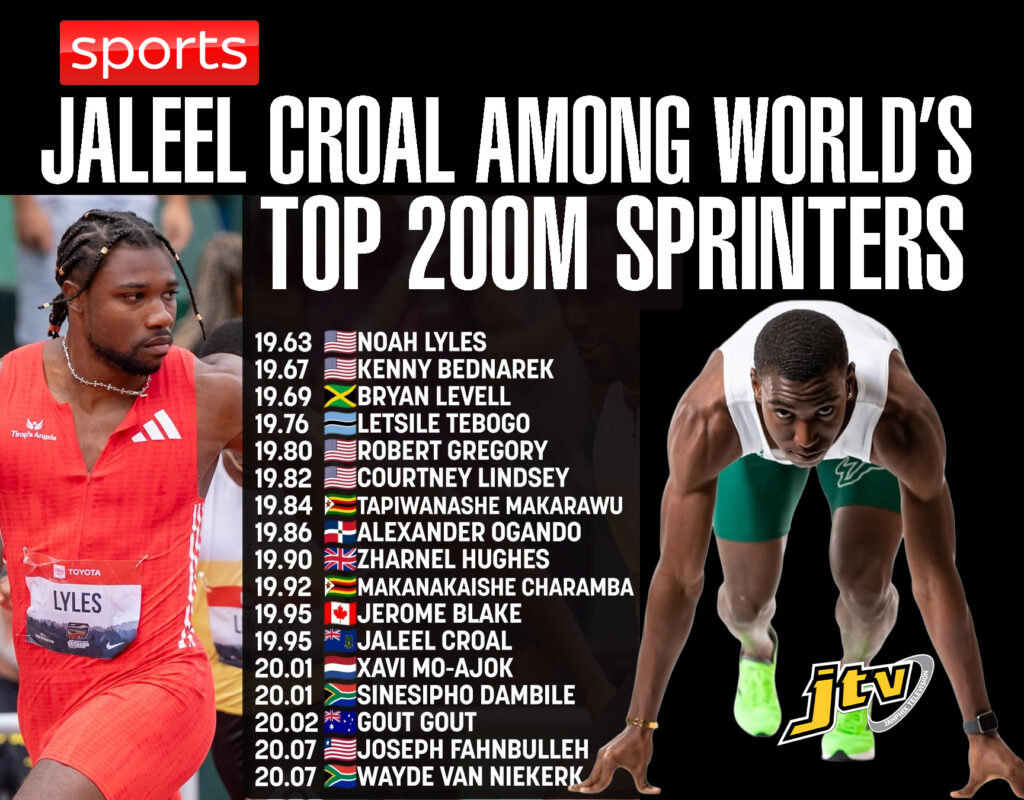 Jaleel Croal has solidified his position among the world’s top 200-metre runners with a national record-setting time of 19.95 seconds, earning him a spot in the global rankings and qualification for the 2025 World Athletics Championships in Tokyo.