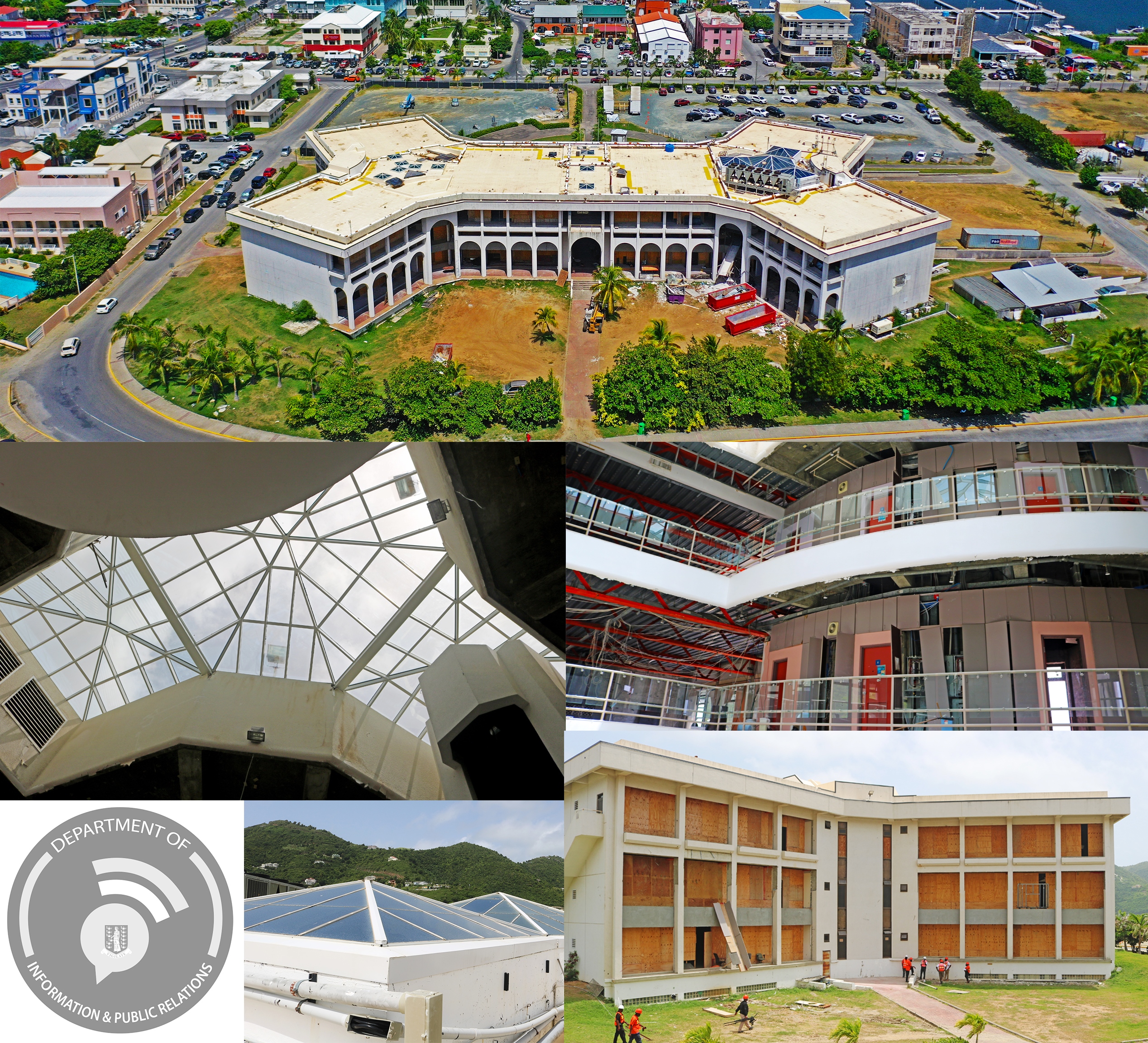 Restoration of the Complex began in 2019 after it sustained major damage during the 2017 hurricanes. Priority works valued at $4.9 million, including roof replacement, skylight repairs, installation of impact-resistant windows and doors, and exterior repairs, have been completed. Demolition of internal office spaces has been carried out, while exterior structural works such as retaining walls, drainage, and driveway access are about 85 percent complete.