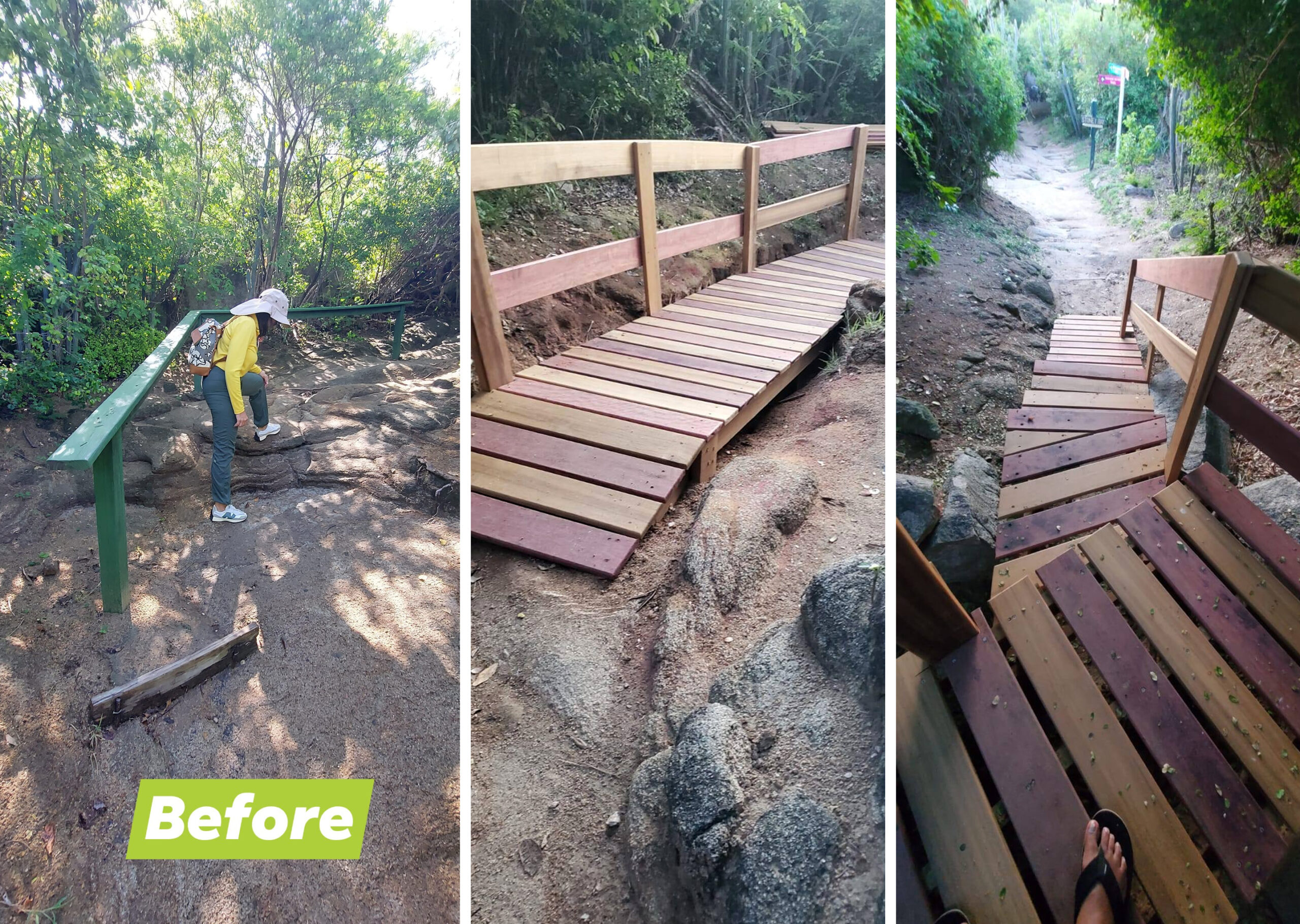 Erosion and storm damage have affected multiple trails on Virgin Gorda in recent seasons, prompting the Trust to assess sections requiring reinforcement or reconstruction. The newly installed woodwork is part of an ongoing plan the Trust intends to expand as needed.
