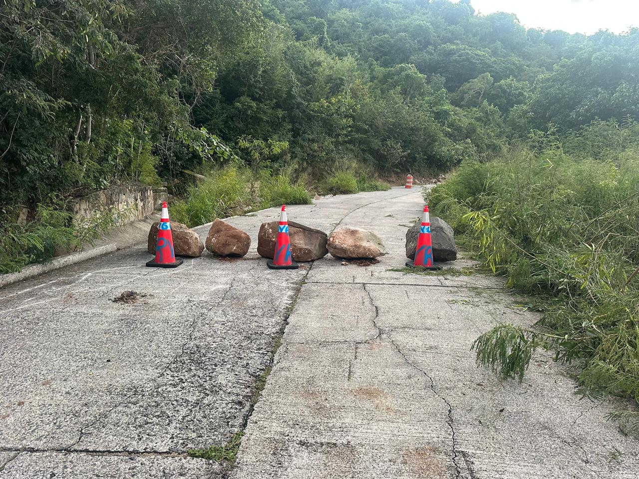 Large boulders and reflective cones have been placed on both sides of the compromised roadway—from after Nail Bay Cattle Grid near Long Bay to just before the Virgin Gorda sign—to prevent vehicles from unknowingly entering the hazardous area.