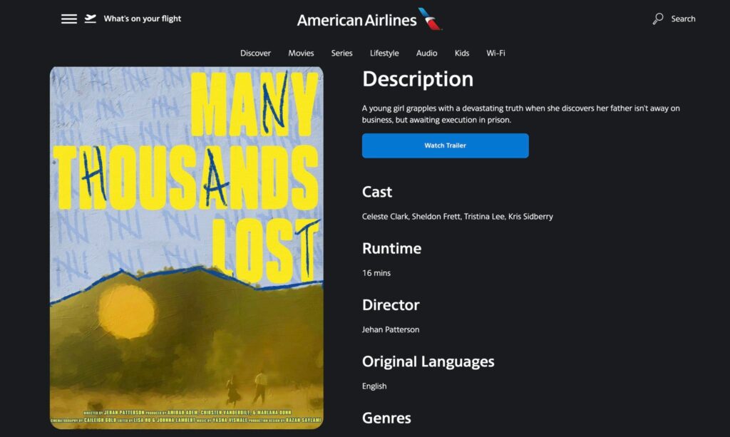 The film, which premiered at the American Black Film Festival, is currently being shown on American Airlines flights, placing it before an international audience of travelers.