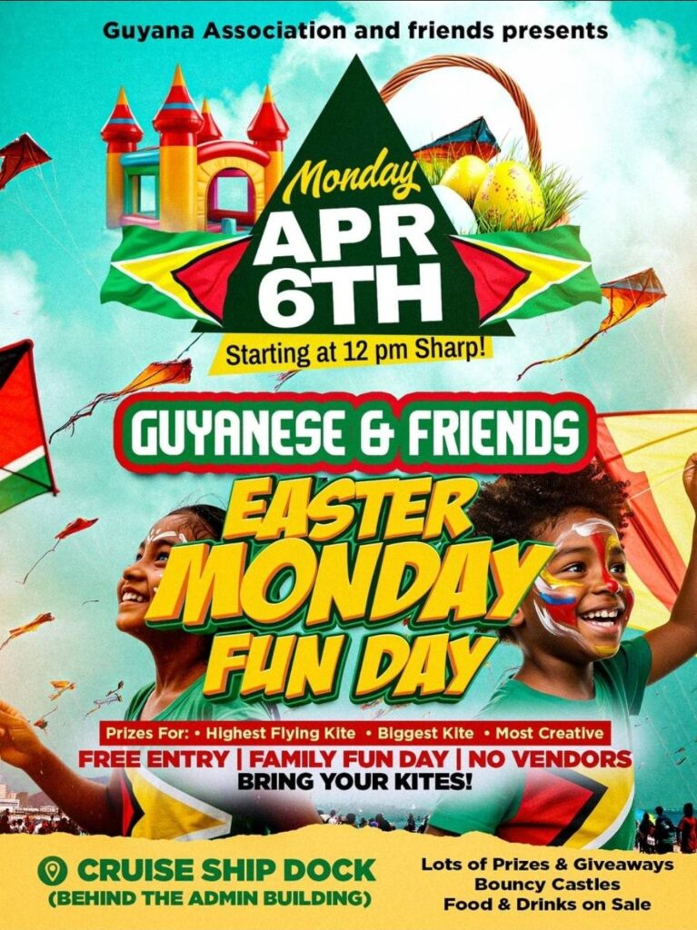 By midday, the Cruise Ship Dock behind the Administration Building is expected to fill with families, children and brightly colored kites as the Guyana Association and Friends hosts its Easter Monday Fun Day. The event, scheduled to begin at 12 p.m., continues a tradition associated with Easter observances across Guyana and the wider Caribbean, where kite flying remains a central activity.