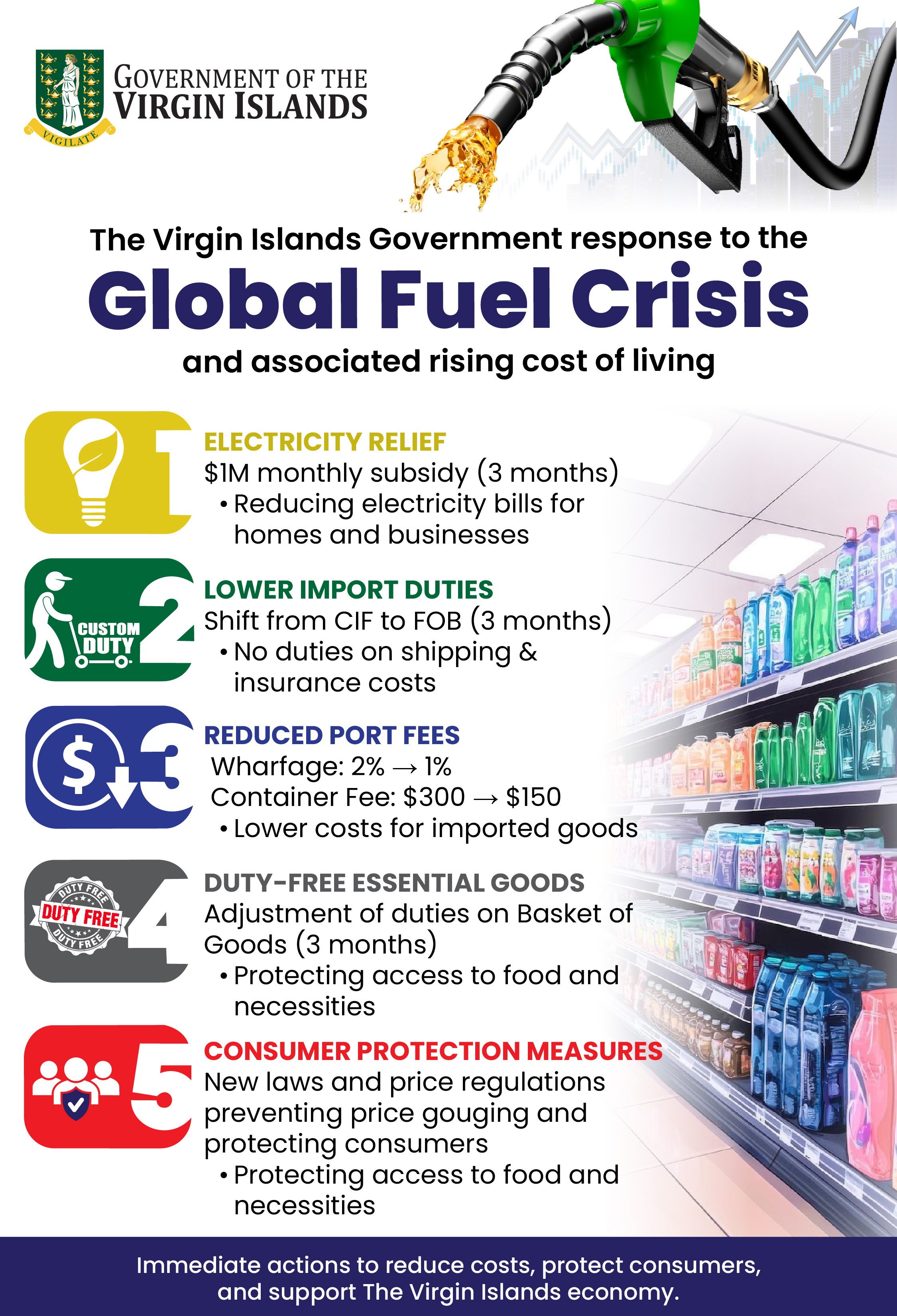 Wheatley said increasing fuel prices, freight costs and the price of essential goods are already affecting households and businesses across the Virgin Islands. The measures, he said, are intended to stabilize prices, reduce financial pressure and protect vulnerable residents.