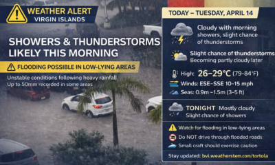 The Department of Disaster Management issued a weather advisory Tuesday, April 14, warning that unstable conditions and additional rainfall are expected across the Virgin Islands, following...